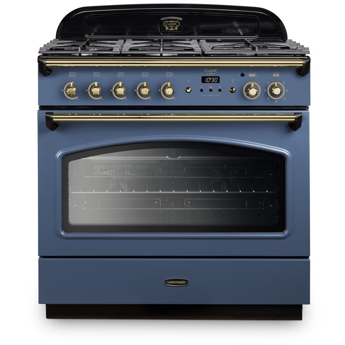 90cm Dual Fuel Range Cooker Classic FX Stone Blue / Brass, A Rated