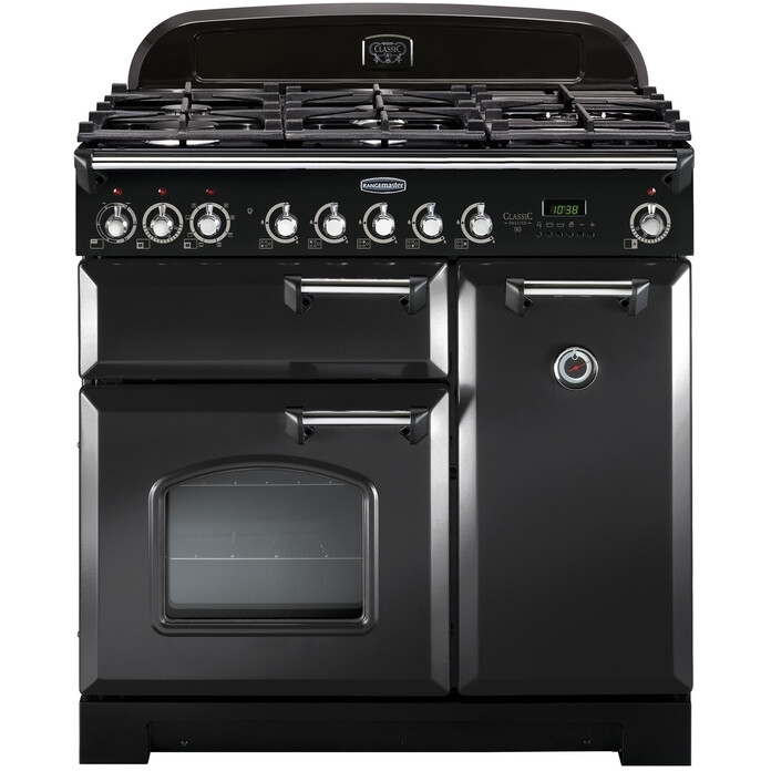 90cm Dual Fuel Range Cooker Classic Deluxe Charcoal Black / Chrome, A Rated