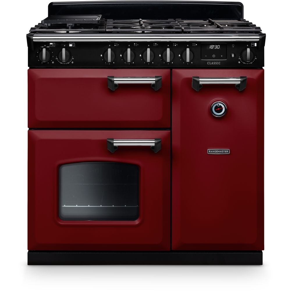 90cm Dual Fuel Range Cooker Classic Bordeaux / Chrome, A Rated