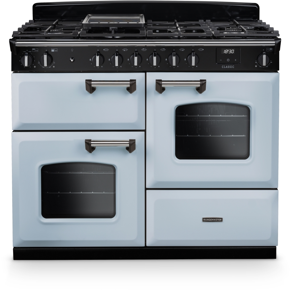 110cm Dual Fuel Range Cooker Classic Misty Blue / Chrome, A Rated