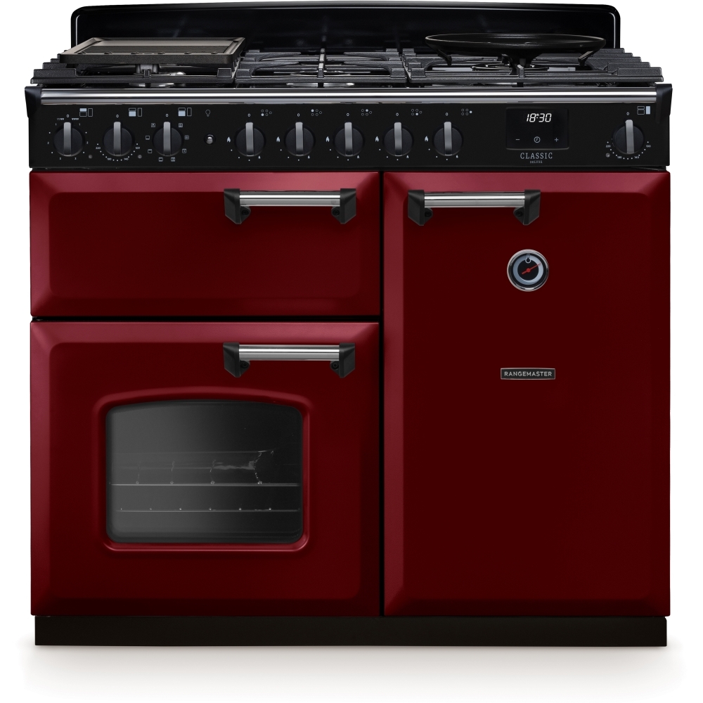 100cm Dual Fuel Range Cooker Classic Delux Bordeaux / Chrome, A Rated