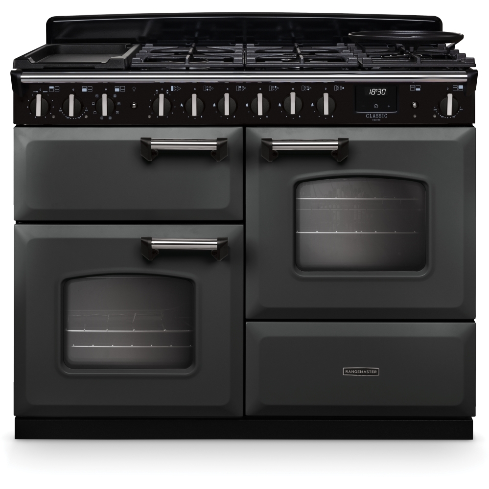 110cm Dual Fuel Range Cooker Classic Deluxe Slate / Chrome, A Rated