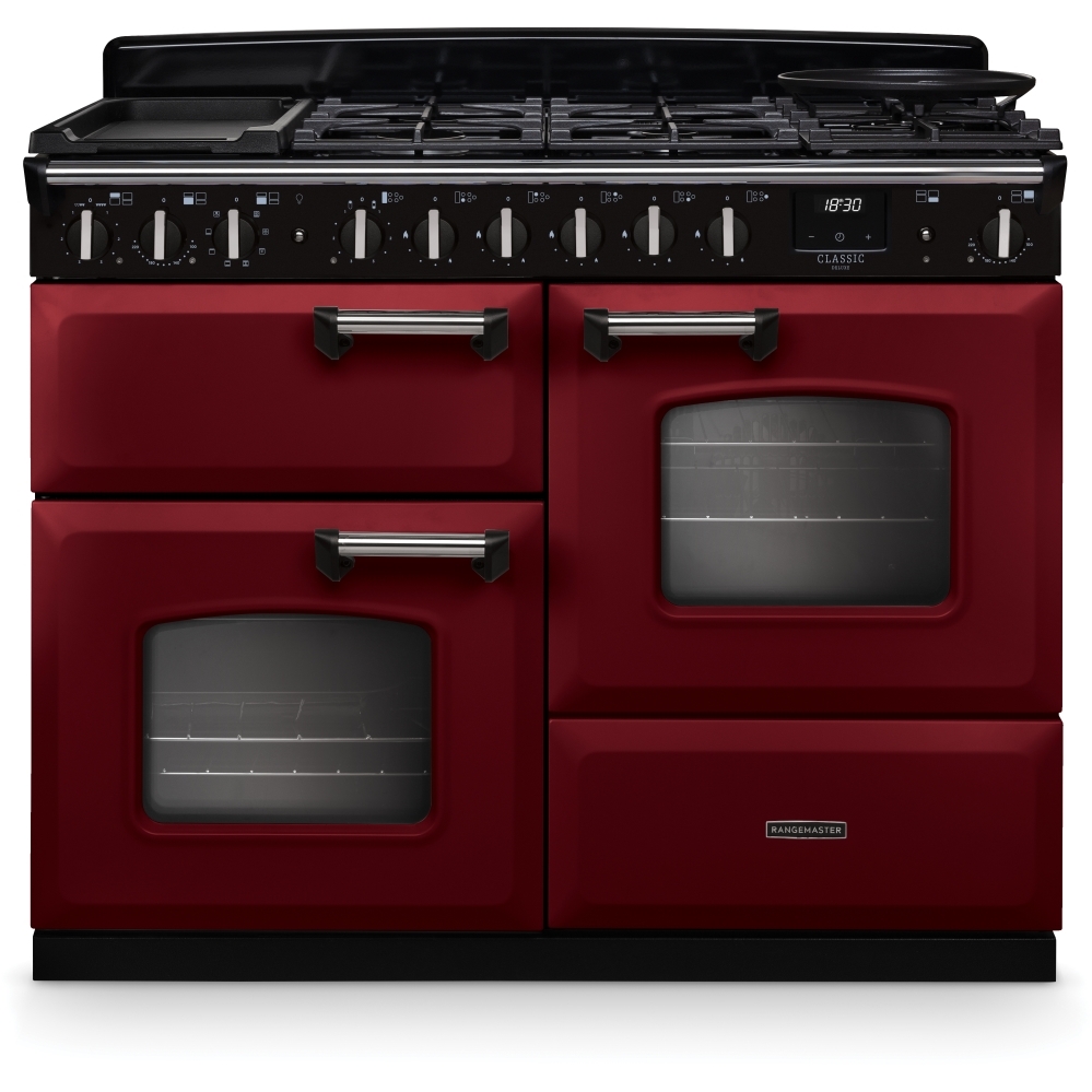 110cm Dual Fuel Range Cooker Classic Deluxe Bordeaux / Chrome, A Rated