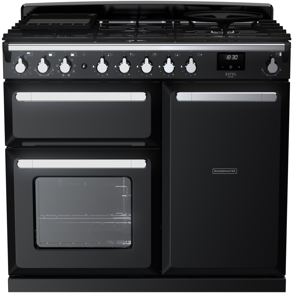 100cm Dual Fuel Range Cooker Estel Deluxe Black / Chrome, A Rated