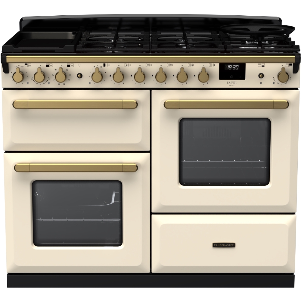 110cm Dual Fuel Range Cooker Estel Deluxe Pale Cream / Antique Brass, A Rated