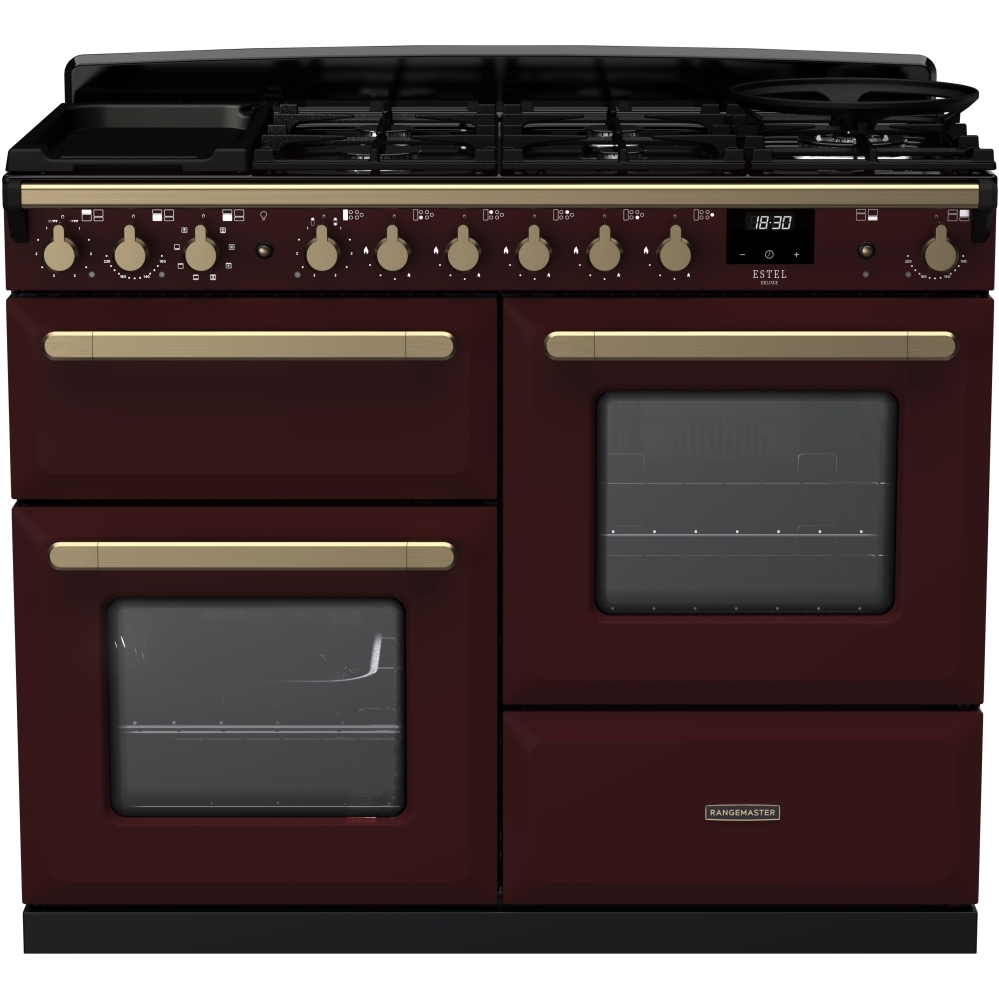 110cm Dual Fuel Range Cooker Estel Deluxe Bordeaux / Antique Brass, A Rated