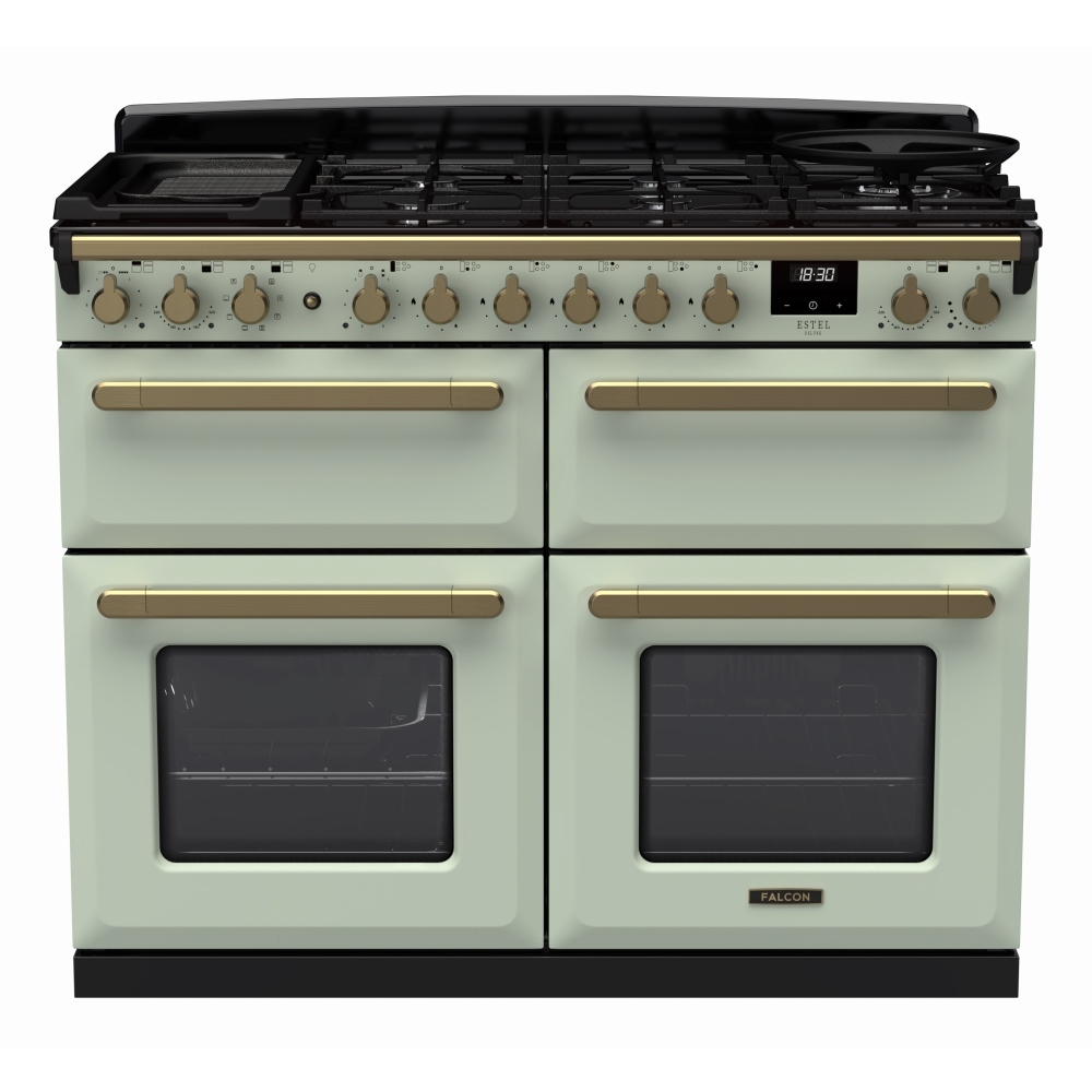110cm Dual Fuel Range Cooker Estel Deluxe Mint / Antique Brass, A Rated