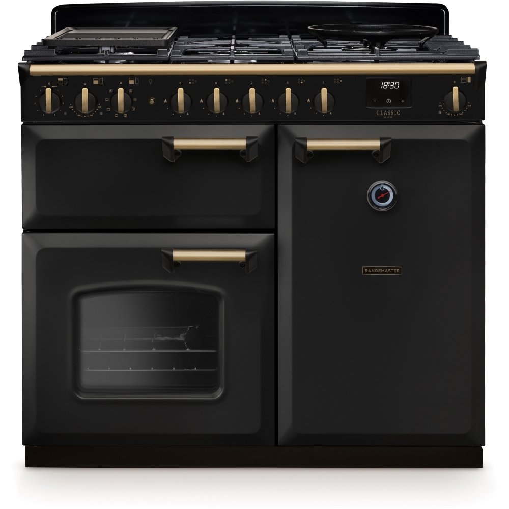 100cm Dual Fuel Range Cooker Classic Deluxe Charcoal Black / Antique Brass, A Rated