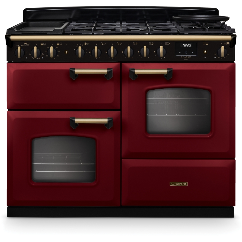 110cm Dual Fuel Range Cooker Classic Deluxe Bordeaux / Antique Brass, A Rated