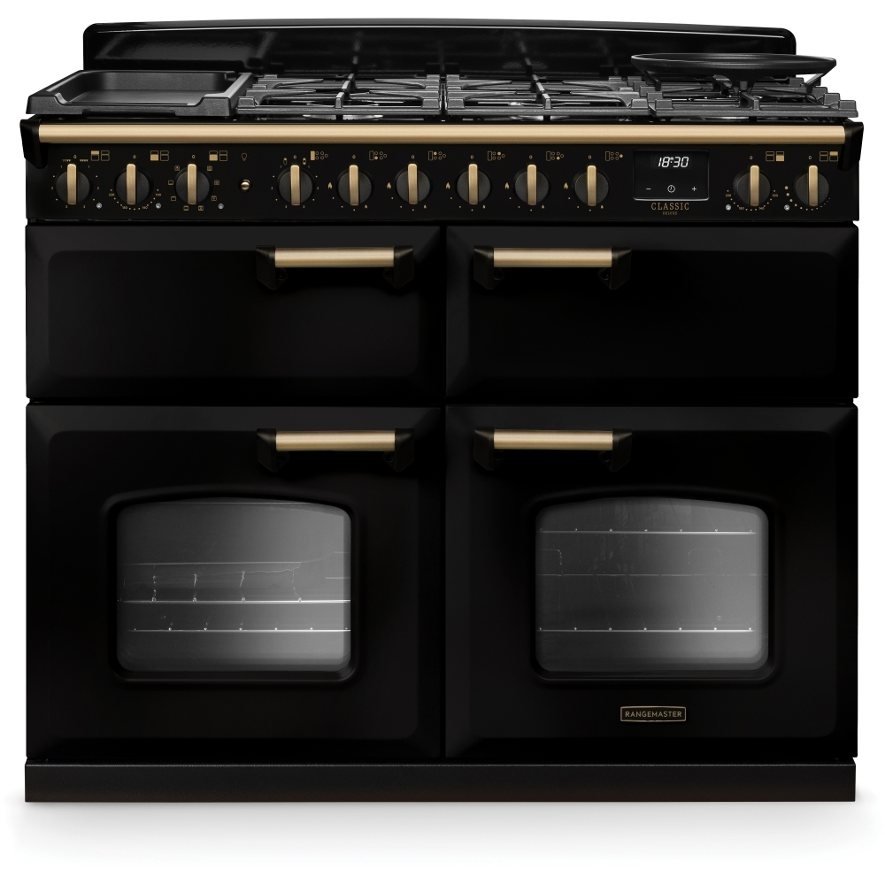 110cm Dual Fuel Range Cooker Classic Deluxe Gloss Black / Antique Brass, A Rated