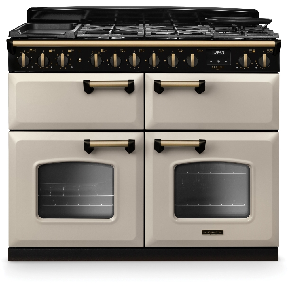 110cm Dual Fuel Range Cooker Classic Deluxe Pale Cream / Antique Brass, A Rated