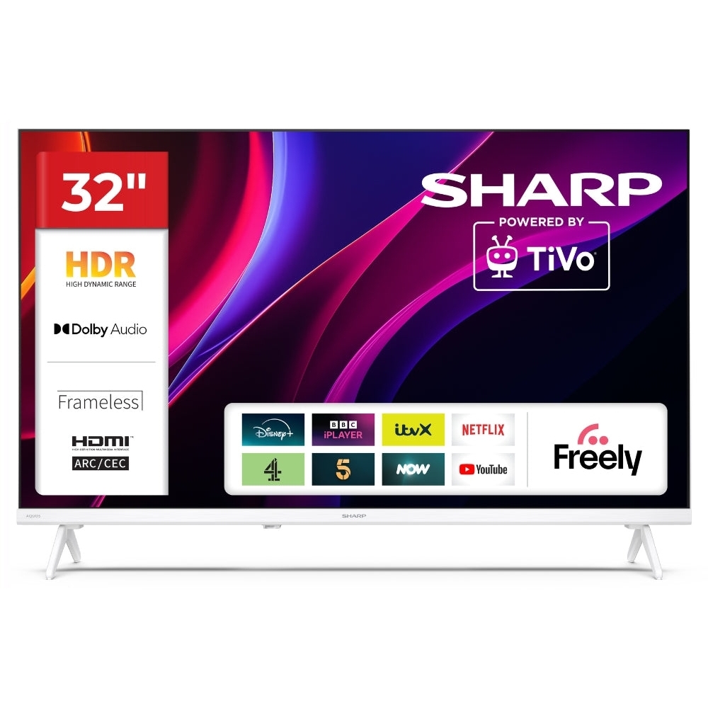 - Enjoy rich color and sharp detail with this 32 inch Smart LED TV from SHARP, featuring HDR10 and HLG supportideal for vibrant living room TV viewing.