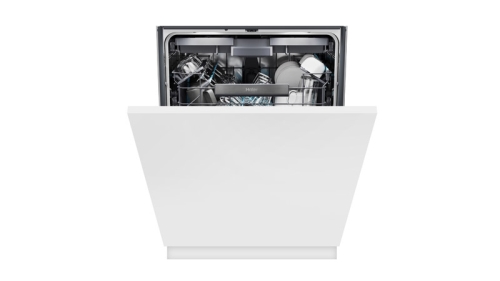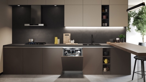 A fully integrated dishwasher is built into your cabinetry, completely concealing the appliance. The controls can be found on the inside edge of the door. This is the most effective way to achieve a seamless kitchen aesthetic. All fully integrated dishwashers will need a full-height furniture door and plinth for installation - if you're buying a replacement, it's likely you already have these in place.