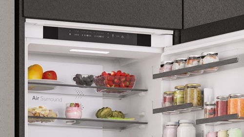 Preserve your food's taste and texture with Air Surround* technology. It uses special outlets on the sides of the cabinet to help distribute cool air more evenly throughout the fridge. This helps prevent your food from drying out, so it's as crisp, juicy, and delicious as the day you bought it. *Test results issued by an independent external technical laboratory comparing a refrigerator with Total No Frost Circle + technology to a refrigerator with direct flow technology.