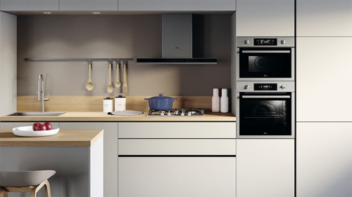High performant energy efficient hoods without compromising the design thanks to a mix of glass and stainless steal materials fitting any kitchen styles.