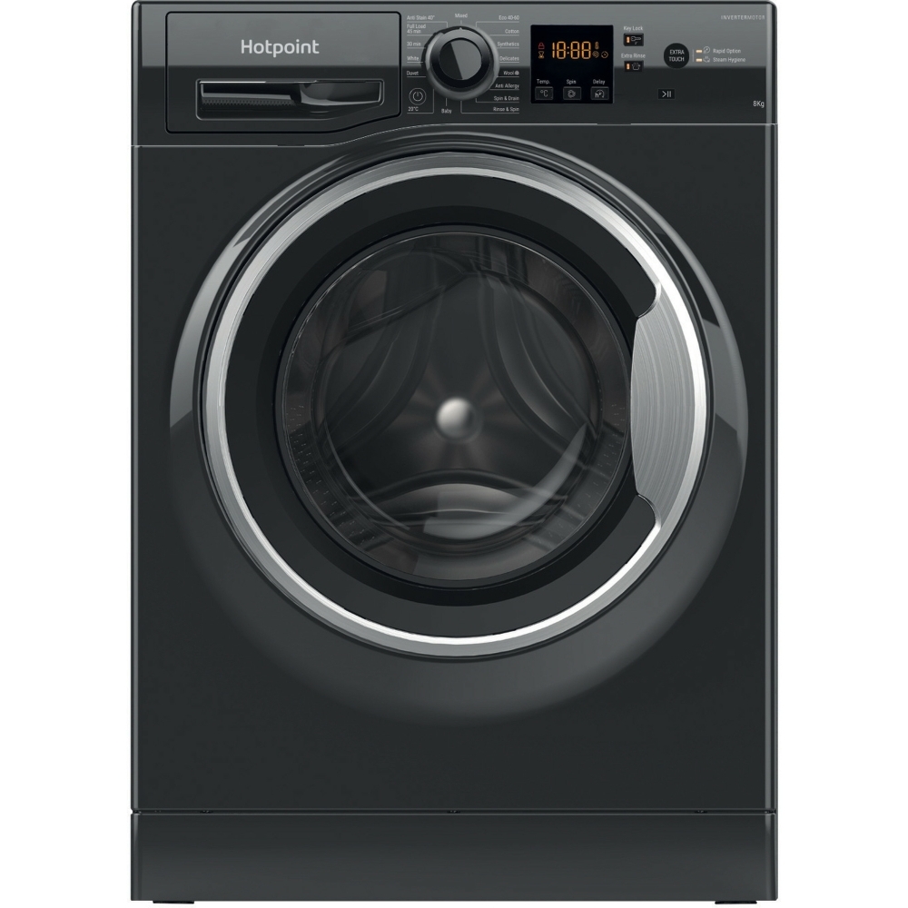 Washing Machine, 8kg, 1400 Spin, Black, A Rated