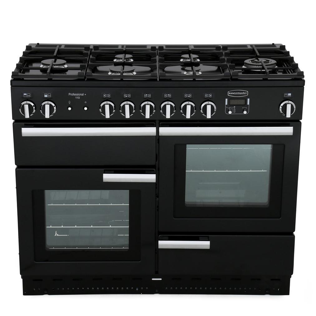 110cm Gas Range Cooker Professional Plus Black / Chrome, A Rated
