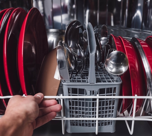 Keeping track of your dishwashers cycle is easy with the red LED spot, which lights up when the cycle is on, and disappears when its ready to be unloaded.