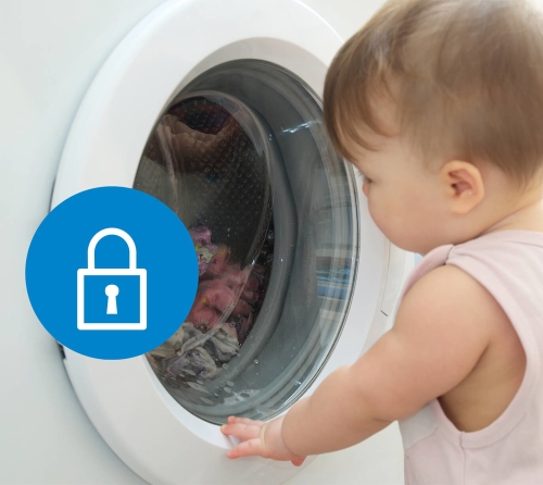You can stop curious little fingers from meddling with your washing cycle thanks to our child safety lock.