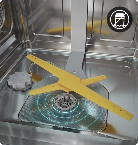 Get outstanding washing results using the new WaterJet Clean™. With rotating dual wash arms it delivers intensive cleaning from every angle. Its two spray arms have separate water jets and rotate in opposite directions. So it cleans heavily soiled pots, pans and dishes rapidly and thoroughly.