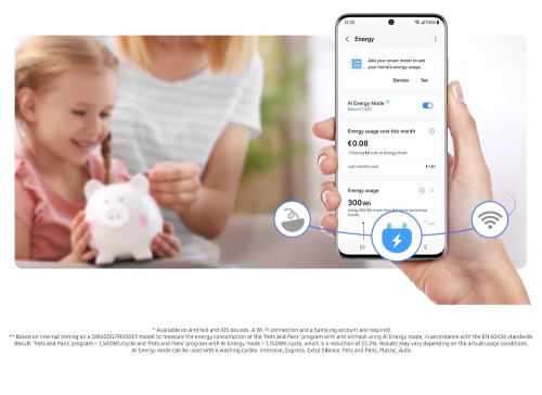 Monitor your dishwashers energy use. Using artificial intelligence, AI Energy mode monitors its power consumption and predicts its ongoing usage. If the monthly electricity bill might exceed your target, you can turn on the energy saving mode, so the dishwasher uses up to 23% less energy.