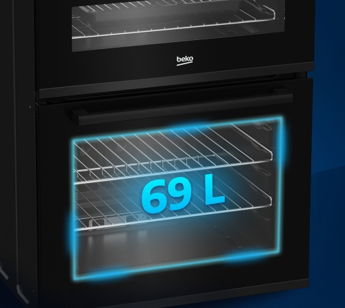 Whether you're cooking for one or preparing dinner for the whole family, this freestanding cooker's spacious 69L main oven capacity makes it quick, easy, and convenient. With two wire racks and one tray included in the main oven, it provides the versatility needed to meet a variety of cooking needs