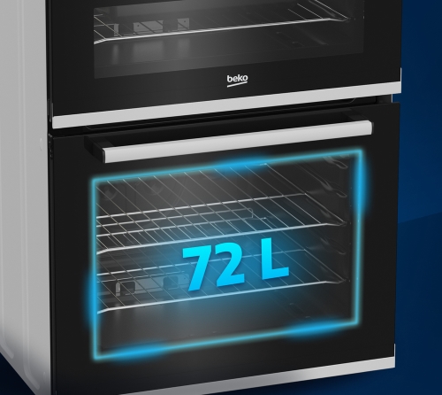Perfect for cooking large or multiple dishes, this freestanding cooker's 72-litre capacity in the main oven makes it ideal for preparing big family meals. With two wire racks and one tray included in the main oven, it provides the versatility needed to meet a variety of cooking needs.