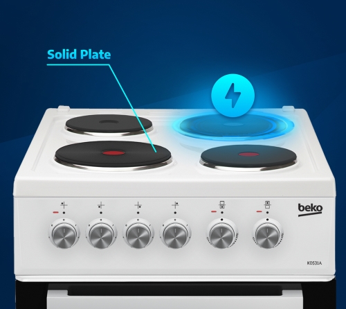 Solid Plate Electric Cooker with Double Oven, White, A Rated
