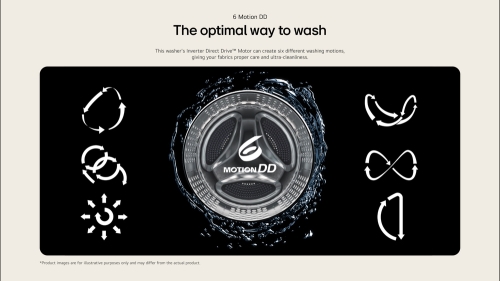 The improved 6Motion Direct Drive™ moves the drum in different directions for optimal fabric care. In addition to controlling spin speed and having left and right drum rotation, the system has six types of motions: rubbing, agitating, compressing, rotating, swing and PowerMotion (FL). With the 6 Motion Direct Drive™, your laundry will get a thorough wash without the wrinkles and damage.