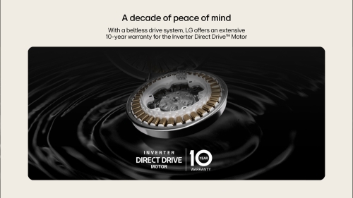 The Inverter Direct Drive Motor™ eliminated the traditional belt and pulley system, which means fewer moving parts. Fewer moving parts means less wear and tear, making our LG washing machines much more durable. It is backed by a 10-year warranty.