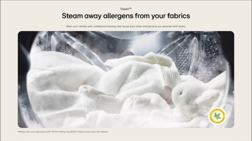 LG Steam™ loosens allergens found in fabrics, which are then drained out during the rinse and spin cycles, reducing allergens on your clothing and bedding.