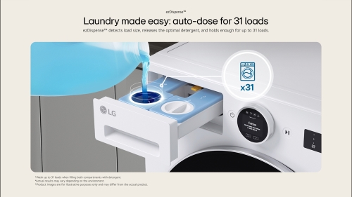 ezDispense™ detects load size and determines the right amount of detergent to ensure washing performance based on the load size. It holds enough detergent for approximately one month of use. It is flexible to convert the softener compartment to the detergent compartment for your preference. If you do not use softener, the detergent compartment can be extended up to 31 dosage. The internal sensor detects the level of detergent remaining within the cartridge and alerts you when its time to refill.