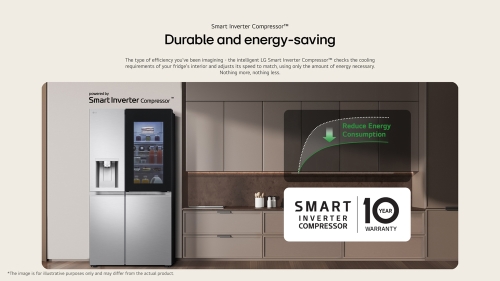 The LG Smart Inverter Compressor™ checks actual demand and supplies the optimum amount of cooling, by controlling its motor speed. So, it provides better energy efficiency, durability and low noise with 10 year parts warranty on the compressor.