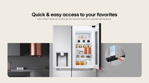 Door-in-Door™ is a second door set within the main fridge door. Inside, you can store the items you use most. This allows you to quickly grab your most-used items without losing cold air.