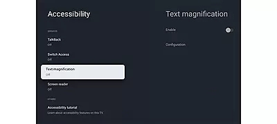 Talkback allows you to check the TV programme guides on screen or to change TV settings without looking at the screen, while the Text Magnification will display an enlarged version of the focused text at the bottom or top of the screen.