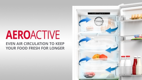 Blombergs AeroActive cooling system minimises temperature fluctuations, ensuring even cold air distribution within the fridge and between shelves, evenly circulating cold air to keep your food fresher for longer.