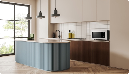 Give your home a positive style boost! The microwave oven features a stylish and modern-looking design and is available in a range of new colors[8]. So you can simply choose your personal favorite, which helps complement the kitchen interior or adds an elegant color accent on the countertop.