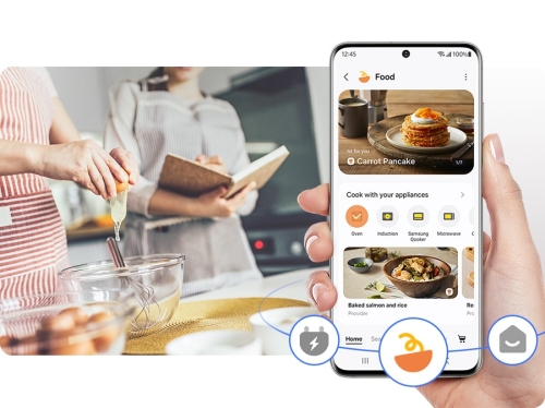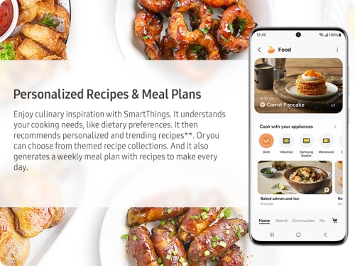 Make your kitchen experience more joyful. SmartThings Food[14] saves time and reduces the burden of cooking. By understanding your needs it recommends personalized recipes[15] and creates a weekly meal plan. It also offers a guided cooking experience and enables effortless grocery shopping[16].