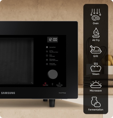 Cook and prepare many different types of food. The All-in-one microwave lets you oven cook, grill, steam, air fry, microwave and even ferment ingredients, like dough and yoghurt, in a single oven. So you can enjoy the convenience and flexibility of many cooking options without other appliances.