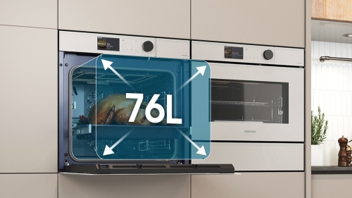 Create more and larger dishes with a massive 76 litre capacity oven. It opens up more possibilities in home cooking. You can prepare lots of different food together, like everything you need for a party. Or it can easily accommodate large items, like a king-size turkey, for a family gathering.