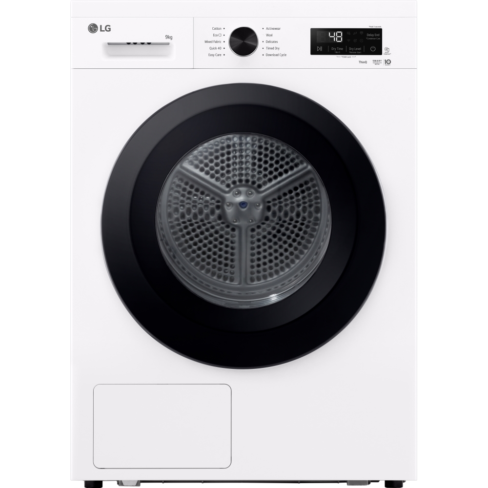 - Smart Pairing receives data from compatible LG washers to set the dryer automatically