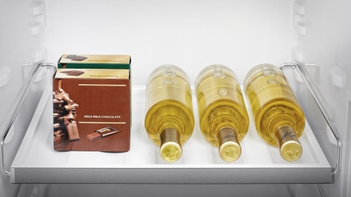 A dedicated and stylish space for wine, soft drink bottles and snacks, which frees up space in your fridge door and prevents bottles from rolling around on the shelves. Additionally, the high-quality chrome finish makes the rack incredibly durable and easy to clean.