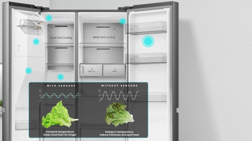 Multiple highly-effective Digital Temp Sensors are built into the refrigerator (as shown here), which are engineered to optimally adjust the cooling and freezing level of the refrigerator.