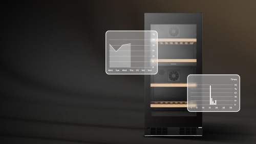 Experience masterful insights into your wines environment. Our wine cabinet boasts precision monitoring, sculpting the perfect storage conditions sip by sip. With weekly reports, monthly data and annual statistics, its not just monitoring; its the art of refining excellence.