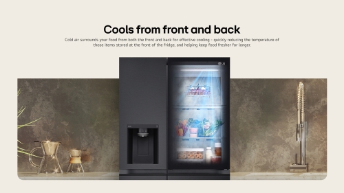 Did you know that the temperature inside your refrigerator varies by areas? LG DoorCooling?™ makes inside temperature more even and cools quicker than a conventional system, promoting longer lasting freshness in your produce and more practical storage.