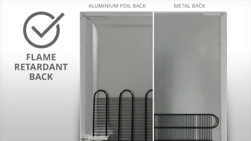 All our refrigeration products have metal or aluminium foil-covered flame-retardant backs for added safety, exceeding UK and European safety standards.