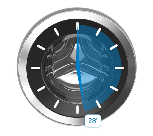 You don't need to wait hours for your washing machine to finish its cycle thanks to our Quick programme. You'll be able to wash a full load of laundry in just 28 minutes - saving you time and money.