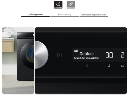 Monitor your washing machine's energy use in real time and change settings from your smartphone with SmartThings AI Energy mode[6]. Check your daily, weekly and monthly energy consumption to take control. If you choose a cycle using AI Energy mode, you can reduce energy use by up to 70%[7].